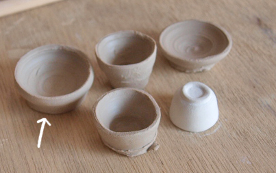 (左奥の茶碗は、ここまで作ったのに不注意で割ってしまったのでした)