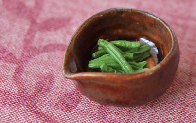同じタイミングで作った小鉢も、縁の部分を飴釉にぐるりと浸したのに
